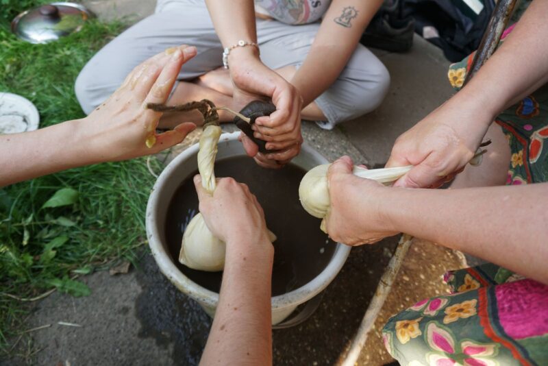 My allotment garden in Rotterdam South is one of the sites for this ongoing research. There I have cultivated a working ethos guided by an etymology of culture offered by fermentation expert Sandor Katz. Culture means cultivating ideas, customs, and social behaviour, as well as bacteria and plants. This working principle was developed together with an informal network in Rotterdam called Learning Grounds, which includes artists, cultural workers, researchers, and gardeners. Through hands-on activities in green spaces, the informal network proposes alternatives to infrastructures of separation. With scalable acts, we can cultivate new ways of living and relating, shift understandings of culture, and its role in growing futures.