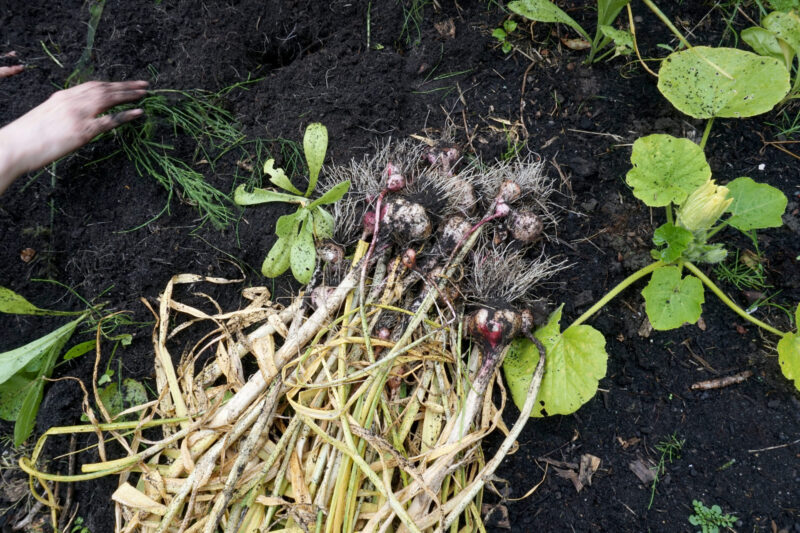 Learning to Grow Learning to Grieve is an ongoing artistic research project exploring how regenerative growing practices—such as agroecological, regenerative, and natural farming, which support soil health, biodiversity, and healthy food—and grief-informed approaches—methods that help consciously engage with death, decay, and the process of naming and witnessing environmental and systemic loss—can intertwine and inform one another. Through situated, relational interventions in growing spaces and landscapes, I apply both these methods. Grief work, in particular, builds capacity to sit with complexity and discomfort, face uncertain futures and harmful pasts, and to hospice a dying system that modernity has wrought, in order to cultivate cultural practices rooted in connection rather than separation.
