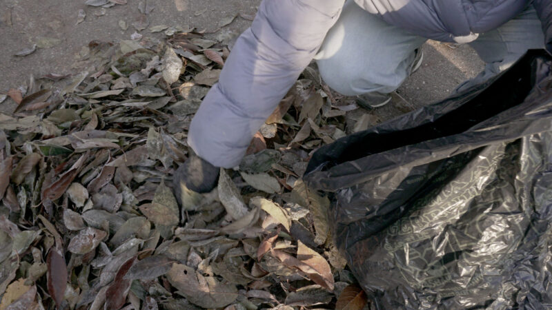 Gather desiccated leaves around the garden and garden entrance, the slimy remains of artichoke leaves from one of the other garden beds