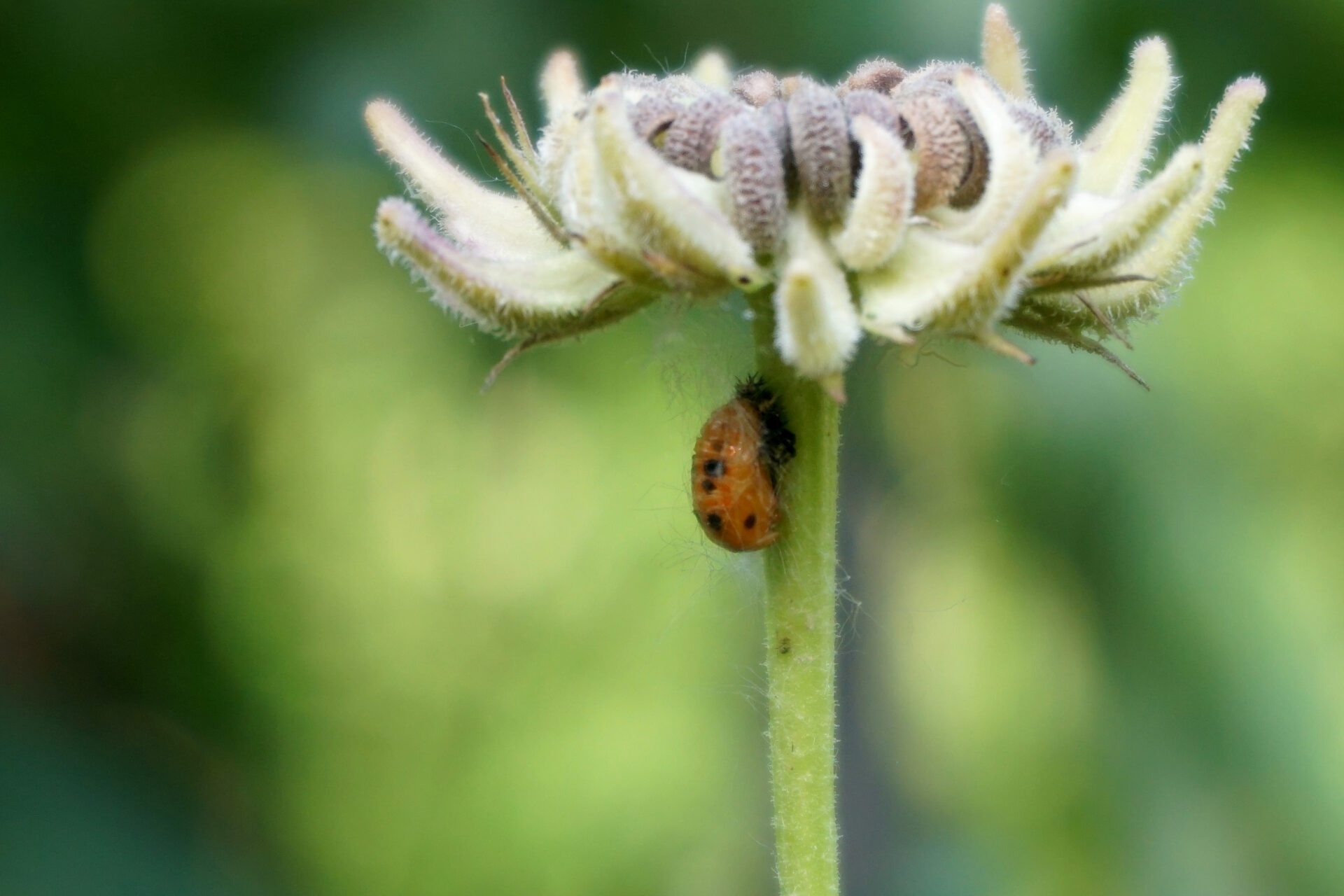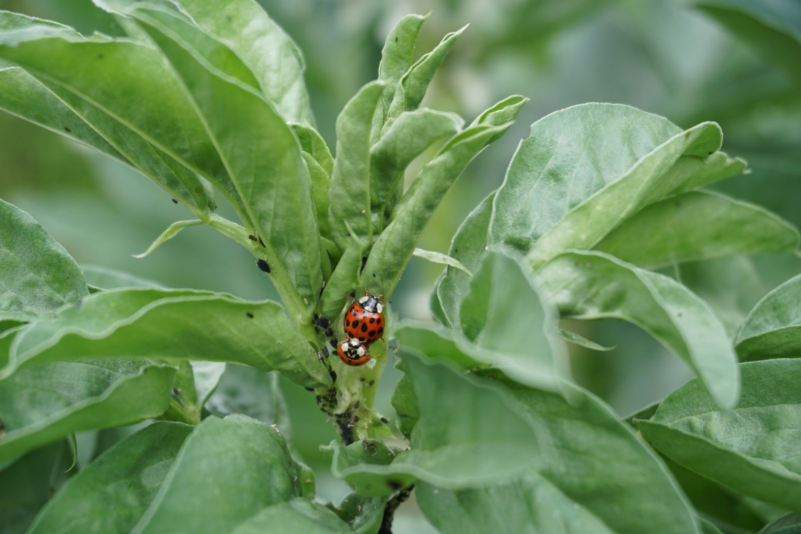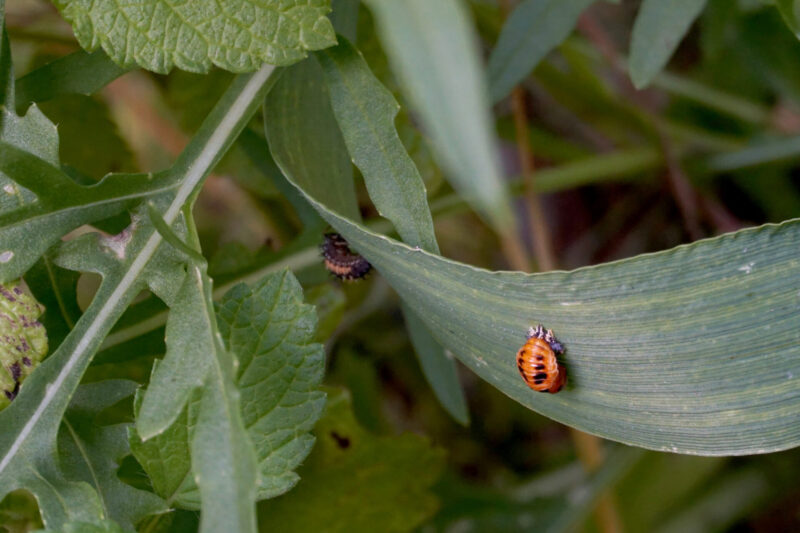 Ingredients: a bed of broad bean plants, self-seeding rucola, desiccated calendula flowers, soil, water, sunshine, rain, aphids, a gathering of ladybugs as they undergo their metamorphosis