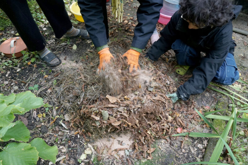Ingredients: garlic and nettle ferment, bran, coffee grounds, dried leaves, compost, worm castings, sea water, rain water, brown rice vinegar, indigenous microorganisms raw sugar mixture, hay foraged from the canal shore