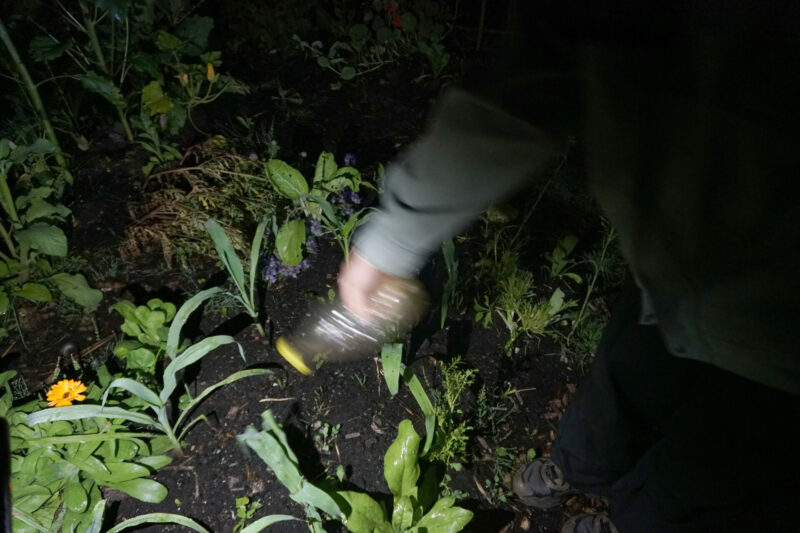 Add ingredients collected from the surroundings (forest soil, worm compost, comfrey liquid, rain water)