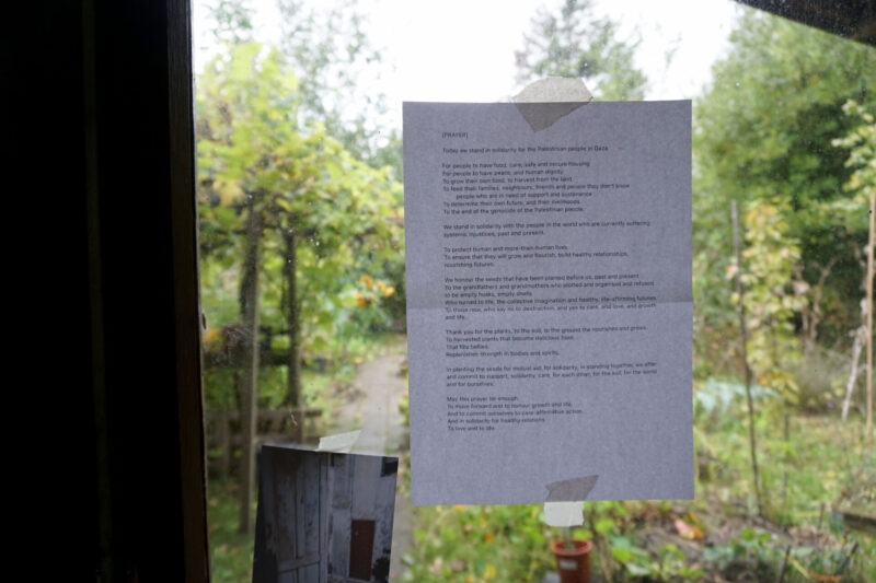 Optimal breathing, an invitation to visualize and ground oneself in the garden’s infrastructures and how they might offer support, to feel into what is currently not supporting the people and the land in Gaza