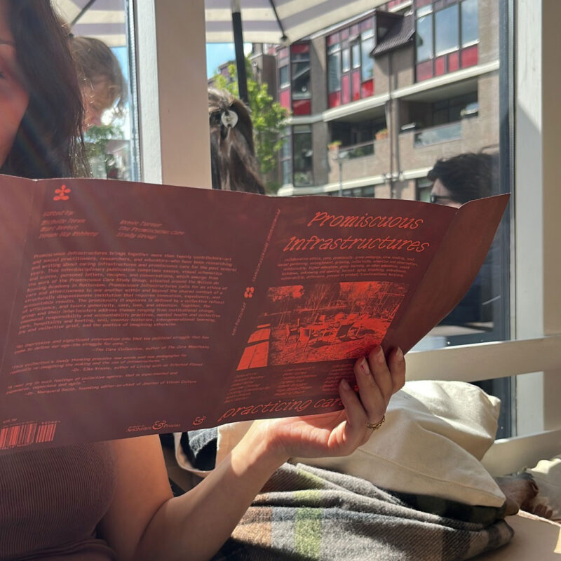 Promiscuous Infrastructures brings together more than twenty contributors—art and social practitioners, researchers, and educators—including the twelve core members of the Promiscuous Care Study Group, who have been researching and writing about caring infrastructures and promiscuous care for several years. This project takes seriously the urgent need to imagine diverse infrastructures of care at every scale of planetary existence. The resulting interdisciplinary publication comprises essays, visual schematics and scores, personal letters, recipes, and conversations, which emerge from the work of the study group, situated around the Willem de Kooning Academy in Rotterdam.