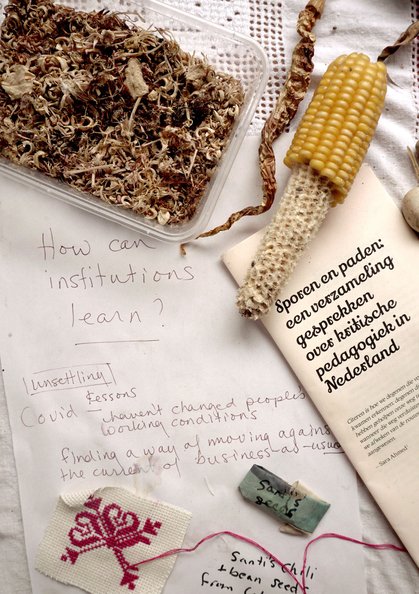The Promiscuous Care Study Group is an interdisciplinary group of students, teachers, and researchers situated around the Willem de Kooning Academy, an art and design academy in Rotterdam. The group formed around shared sensibilities, practices, and approaches that reach through and beyond our institutional roles and institutional work as artists, designers, writers, and educators. The collective research in the study group is diverse in approach and subject matter, touching themes ranging from institutional change, communal responsibility and accountability practices, mental health and collective care, hospitality and hosting, soil, counter-histories, intergenerational healing, joy and collective grief, and the poetics of imagining otherwise.